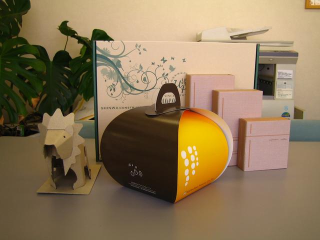 | この紙器(箱)の元を作るお仕事。楽しそうでしょ! | これに材料(紙)をプレスすると展開図ができるんです。 | 清潔な職場ですよ!! | こんな商品も作れるんです。可能性は無限大です! |